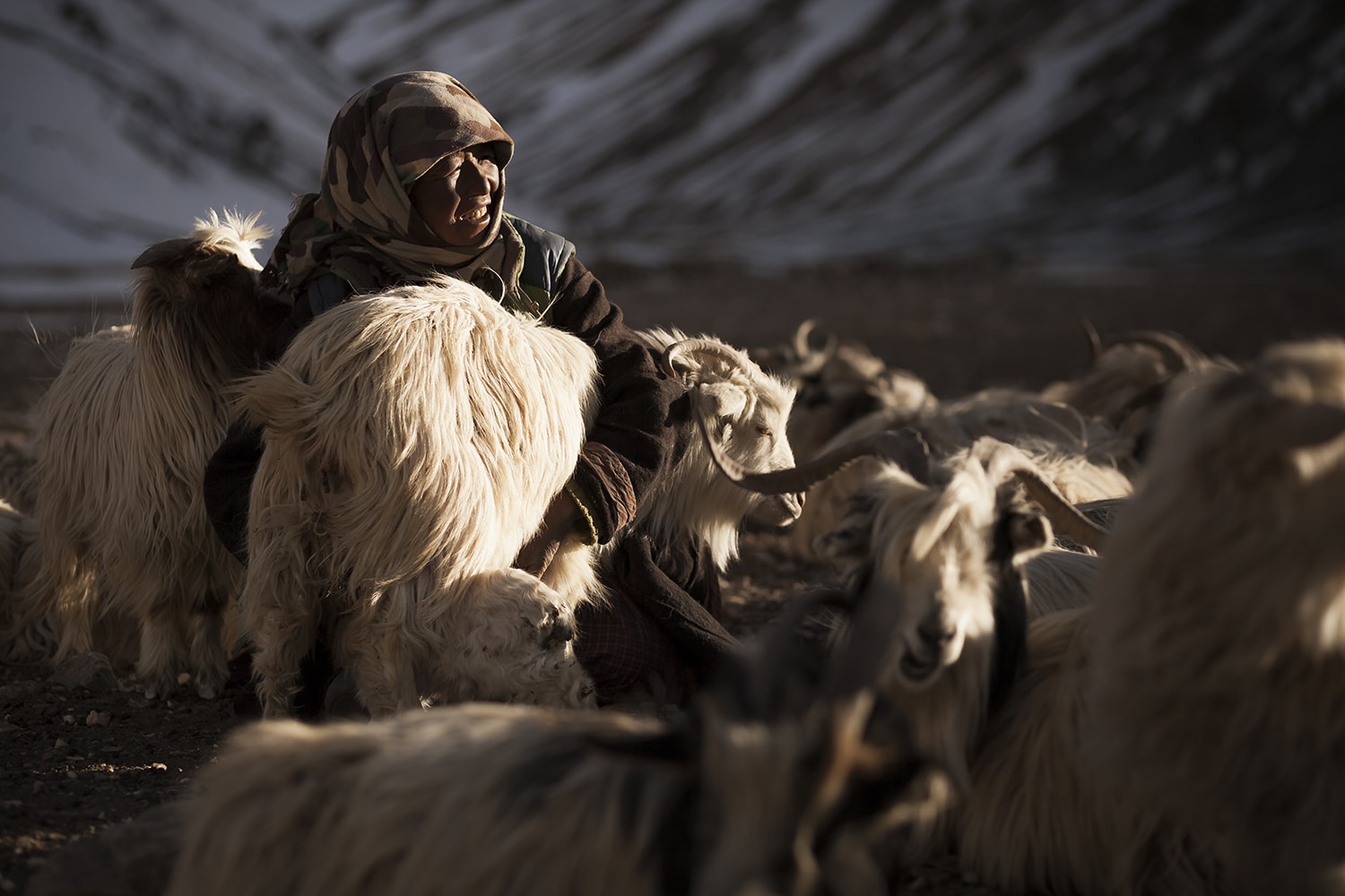 Un nomade avec des chèvres Pashmina – Crédit : Lionel Prado