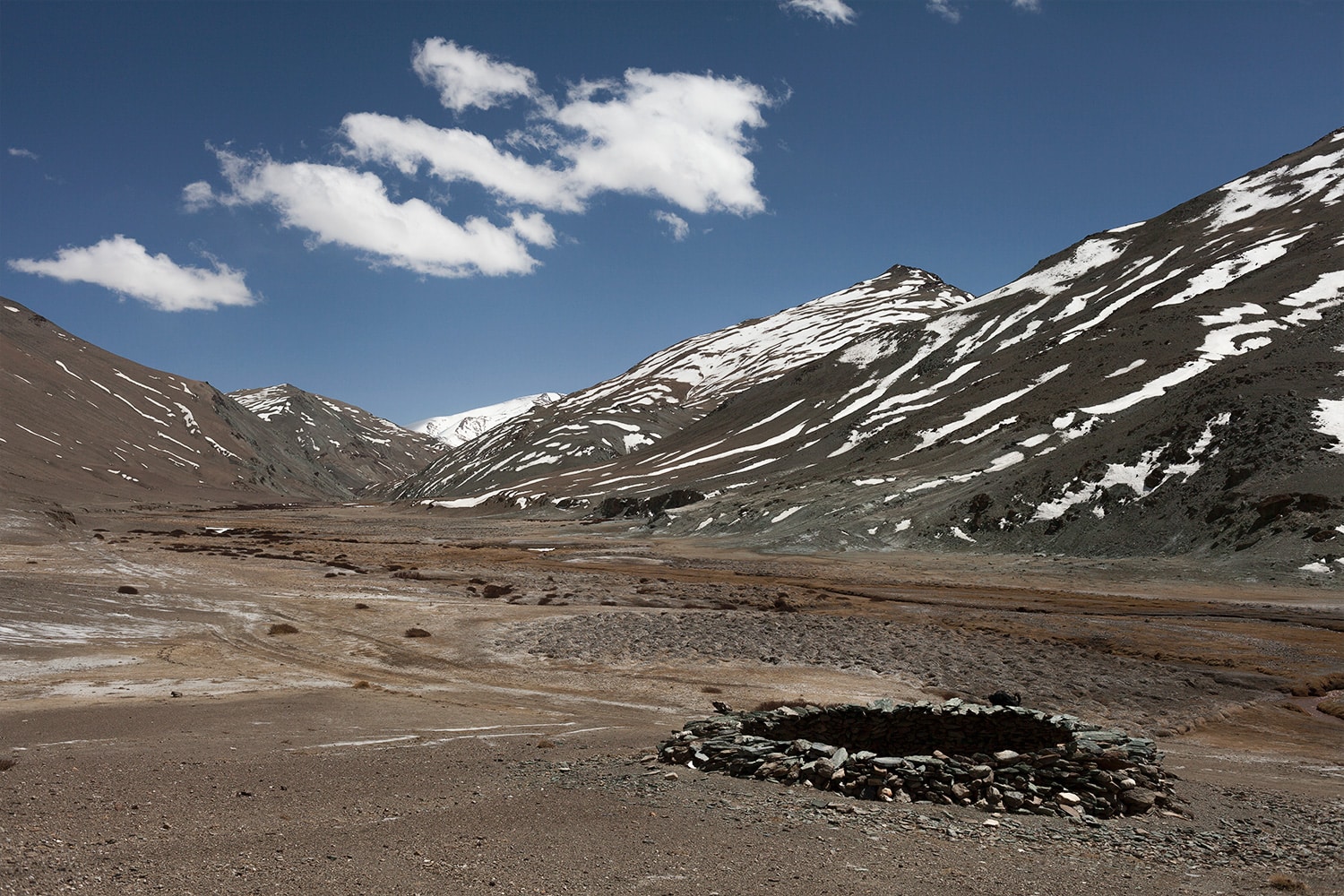 En 2017, lors de mes explorations, il m’est arrivé de tomber sur des pièges à loups sur le plateau tibétain. Ils consistent en un grand trou, entouré de murs de pierres penchés vers l’intérieur afin qu’une fois que la bête tombe dedans, elle ne puisse en sortir. De la viande est mise au centre pour attirer les prédateurs, et les laisser ensuite mourir de faim ou leur lancer des pierres pour les tuer. Cette pratique tend à disparaître avec les grands changements qui s’opèrent depuis avec les programmes de cohabitation.