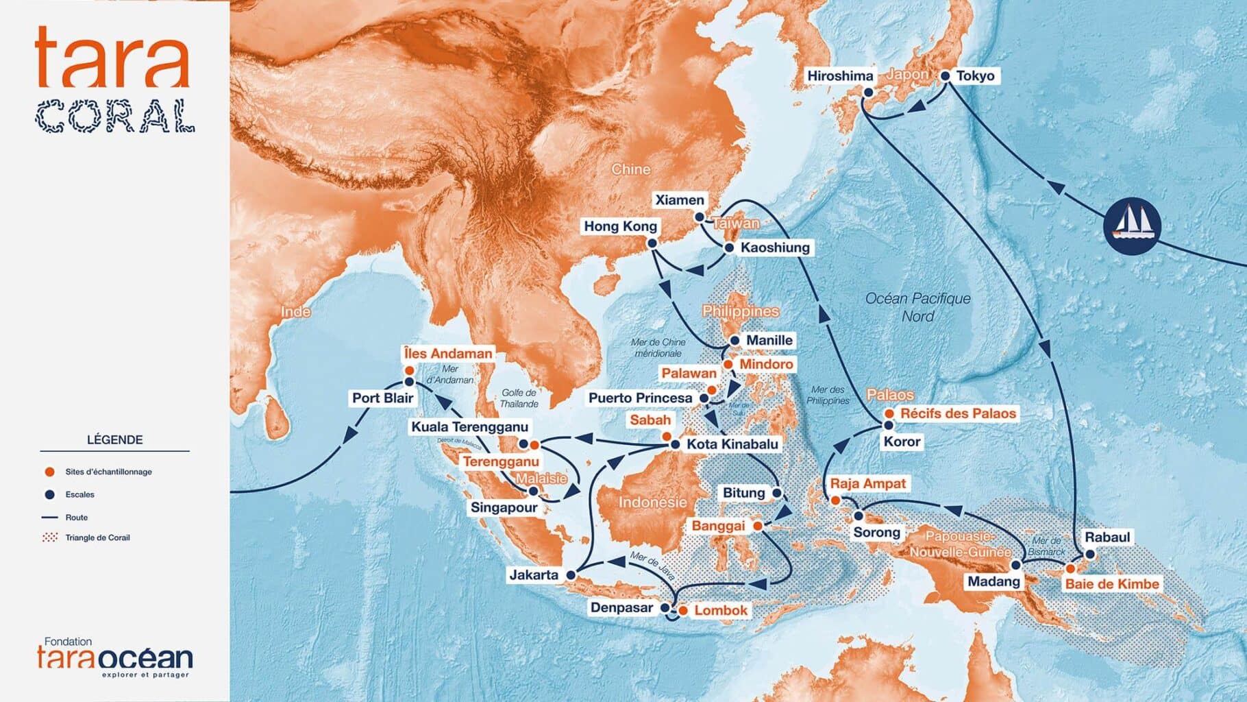 Le 14 décembre dernier, la goélette scientifique Tara a quitté Lorient (Bretagne). Cap sur l’Asie du Sud-Est, puis la Papouasie-Nouvelle-Guinée. À partir de mai 2026, elle passera dix-sept mois à explorer le Triangle de Corail, une vaste région de 5,7 millions de km 2 qui concentre à elle seule un tiers des récifs coralliens mondiaux et près de 600 espèces de coraux. Soit environ 75 % de la diversité connue.