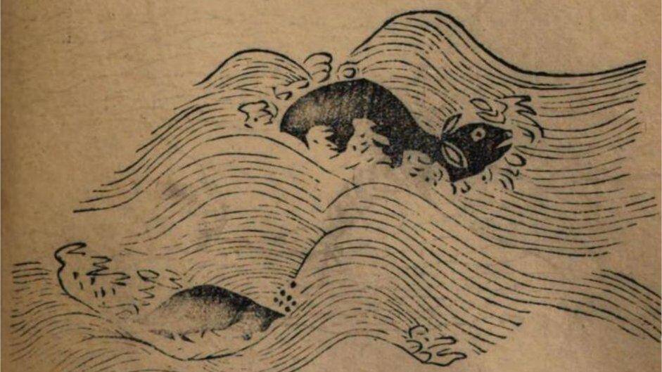 Estampe représentant un marsouin dans le fleuve Yangtsé, tirée d’une page du «Sancai Tuhui» (en français, Compendium illustré des Trois Talents), une encyclopédie chinois compilée par Wang Qi (1573 – 1620) et publiée en 1609 sous la dynastie Ming. — © Wang Qi / Wikipedia Commons