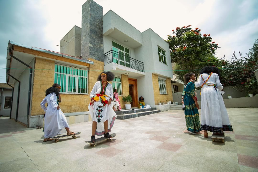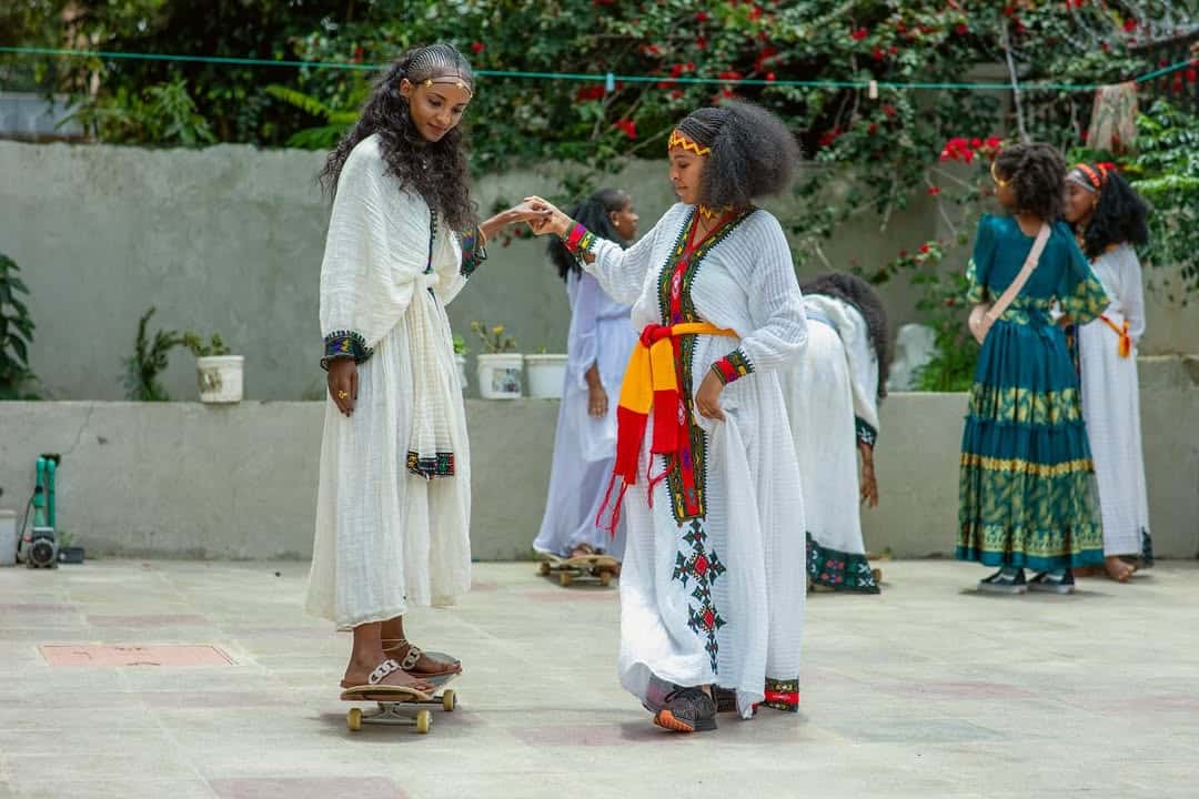 Skateuses Ethiopiennes en tenue traditionnelle – Crédit : Petrosteka