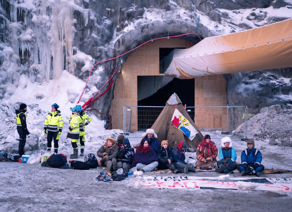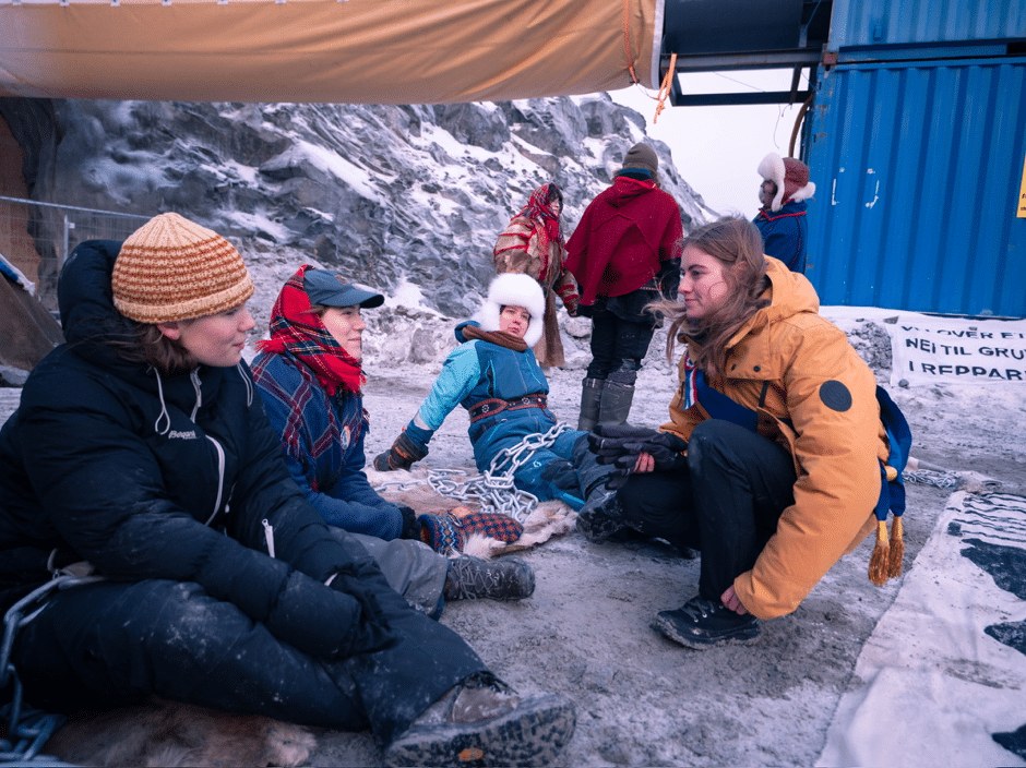 Depuis 2024, un campement de protestation s’est installé près du Repparfjord, porté par l’organisation Natur og Ungdom. Sur place, militants écologistes et représentants samis dénoncent un projet destructeur.