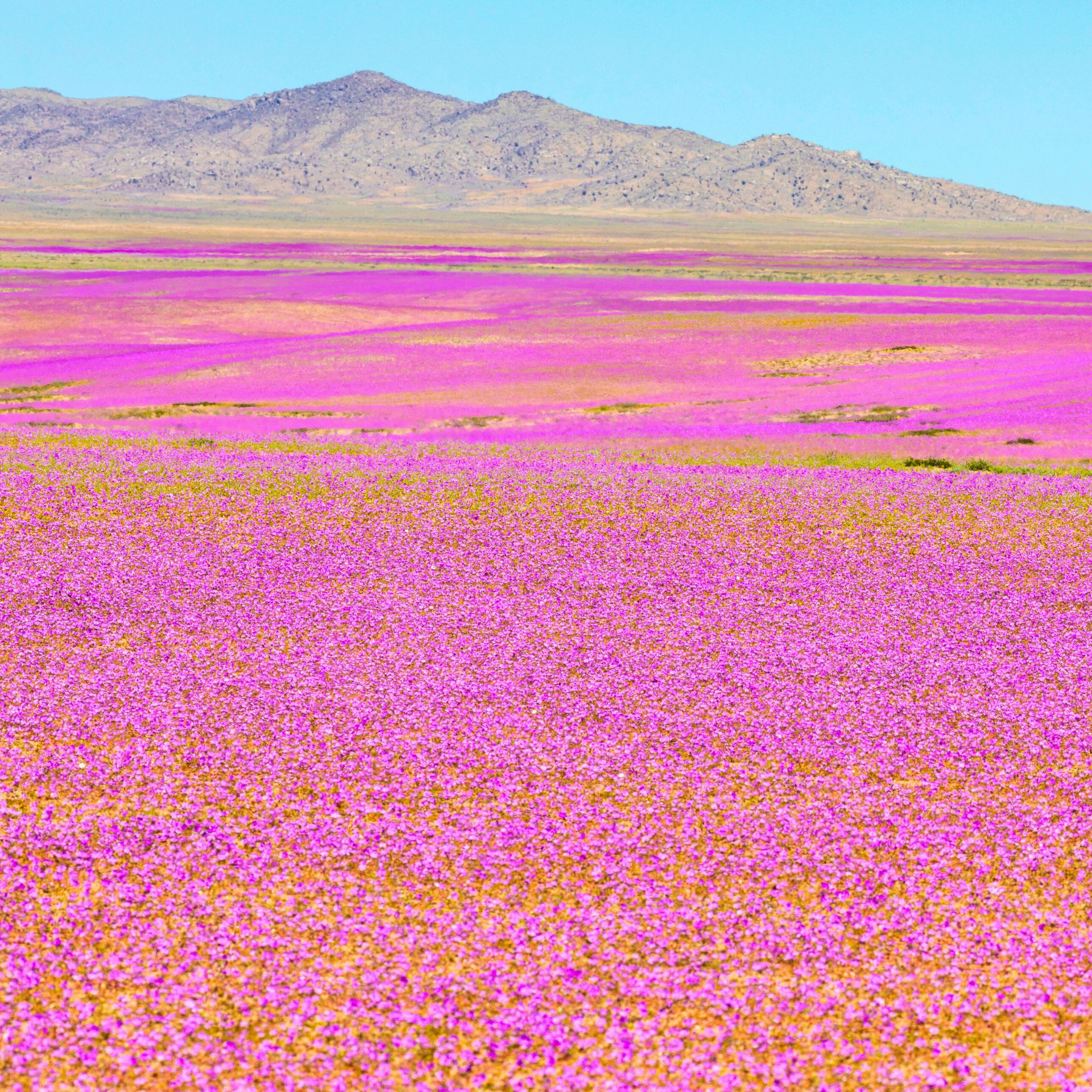 Suite à de fortes précipitations, un tapis de fleurs s’est déployé dans l’un des déserts les plus arides de la planète. Les averses ont représenté l’équivalent de 30 fois tout ce qu’il pleut en un an en seulement quelques semaines.
