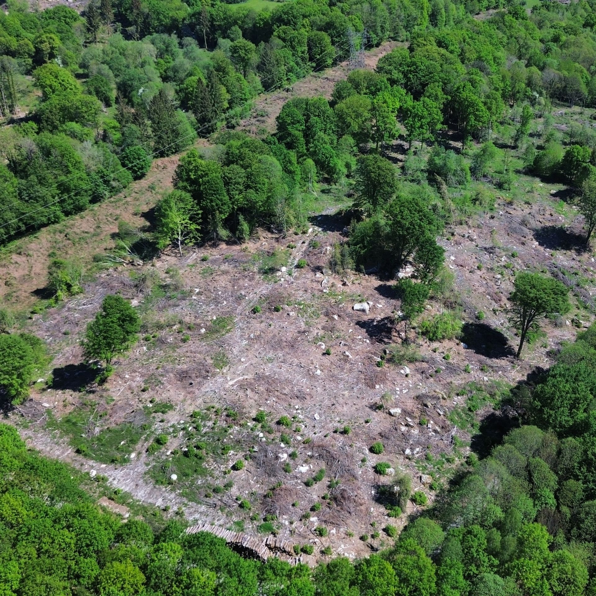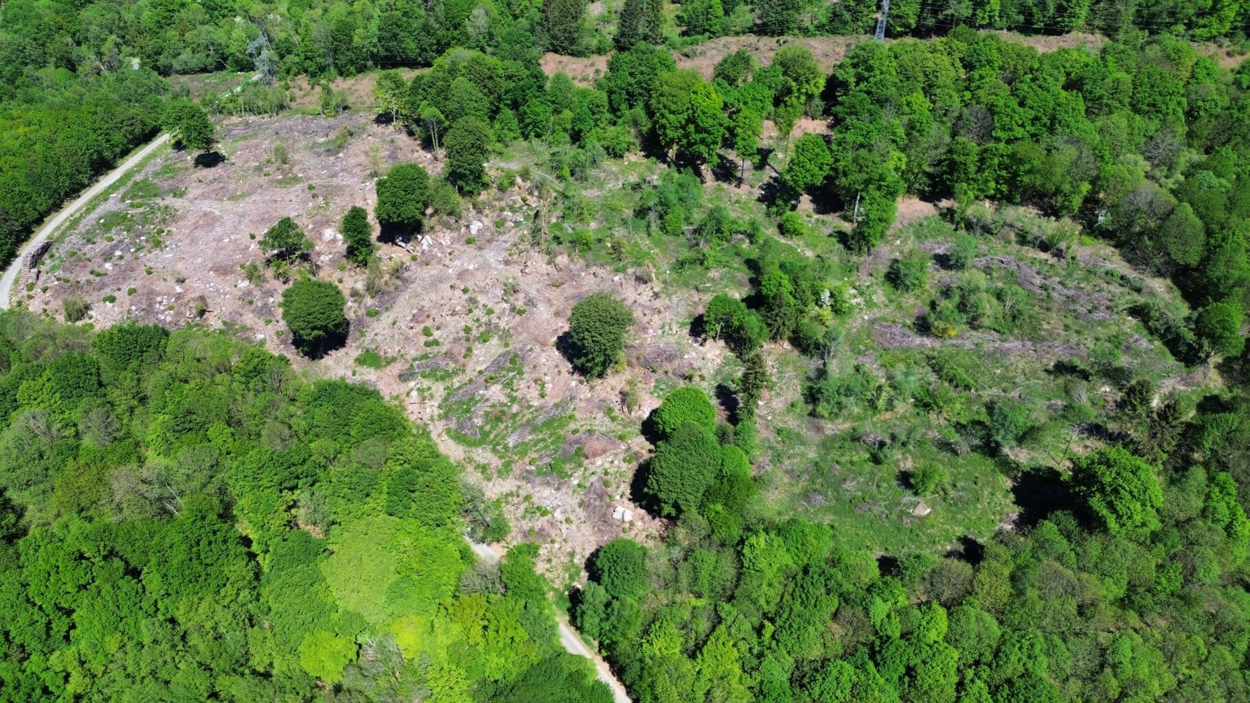 Vue aérienne de la coupe de 2025 – Crédit : Terre de Forêt