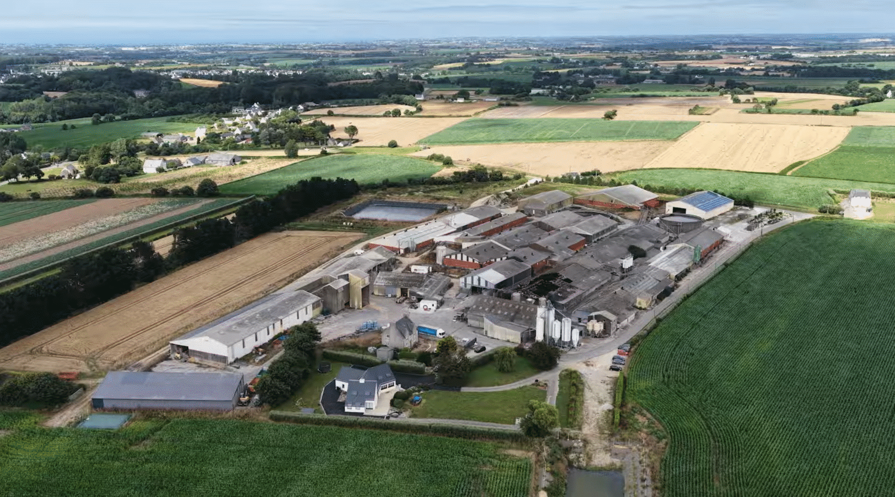 Un des 19 élevages porcins de Plouvorn – Crédit : Drone L214
