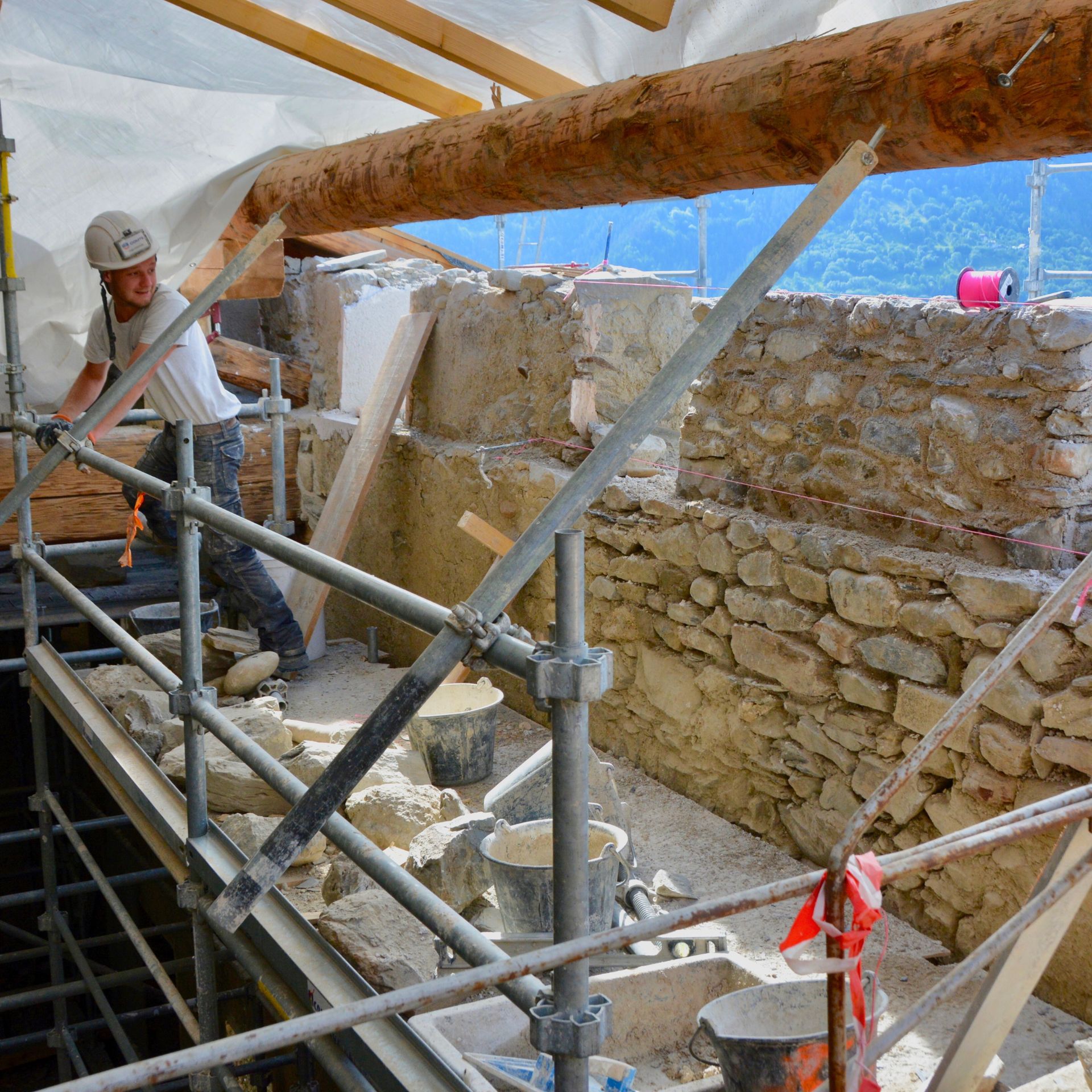 Certaines maçonneries sont par exemple réalisées de manière traditionnelle à partir de gypse provenant du proche vallon de l’Arbonne et cuit sur place : « on a fait de l’archéologie expérimentale », se souvient Bruno Berthier en riant, « pour montrer que c’était possible ».