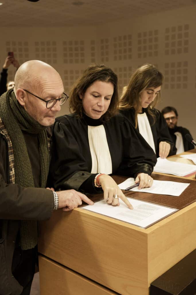 FIAN Belgium, Greenpeace et des membres de la société civile s’ajoutent à la liste des soutiens d’Hugues. Ensemble, le dossier monté est solide, sourcé, avec des références scientifiques, politiques et judiciaires. Une jurisprudence existe : en 2022, 2000 affaires judiciaires de ce type avaient déjà pris cours selon l’ONU. Certaines, dont l’affaire climat ou l’affaire Shell, ayant abouti et donnant ainsi de l’espoir au Farmer case.
