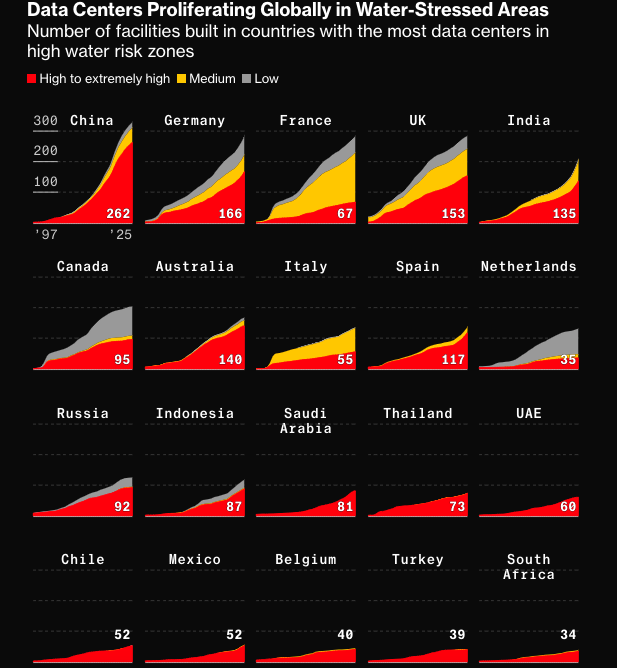 En 2025, L’Agence Internationale de l’Énergie (AIE) estimait la consommation d’eau des data centers à 560 milliards de litres d’eau en 2023, et alertait sur le fait qu’elle pourrait atteindre 1 200 milliards de litres en 2030.