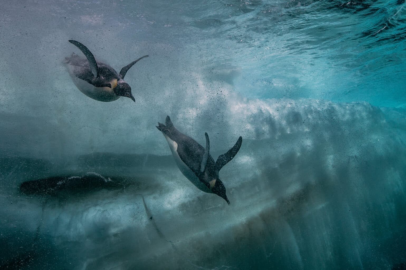 Plongeon de manchots Empereur en bord de banquise – © Laurent Ballesta, Expedition Wild-Touch Antarctica!