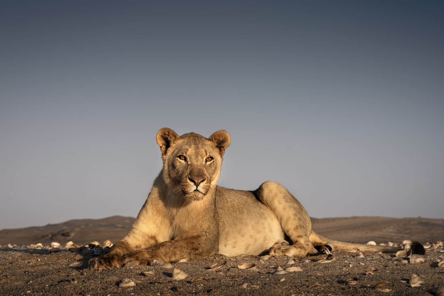Ces lions n’ont toutefois pas élu domicile sur la plage. Ils y descendent seulement la nuit pour chasser, puis regagnent les dunes à l’aube, là où ils trouvent protection et fraîcheur. Aujourd’hui, douze lions vivent le long de la Skeleton Coast. Ils appartiennent à une population totale d’environ 80 individus.