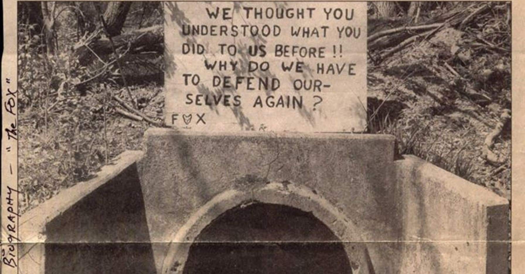 Aux racines de toute histoire, de toute lutte se trouvent les coquilles des graines qui ont germé et qui ont, avec la patience, le temps et le courage, ouvert leurs fleurs vers de nouveaux printemps possibles. Si aujourd’hui, des collectifs, des militants d’action directe comme les Soulèvements de la Terre, les Écureuils, les ZAD et tant d’autres existent, c’est parce que des pionniers ont ouvert la voie. Nous sommes en 1969, on croirait à son nom qu’il sort d’un film de Wes Anderson, il n’en est rien. C’est le précurseur de l’écosabotage, on vous présente The Fox.